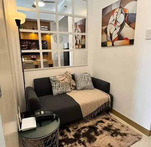 ベッドルーム1室のLas Pinas City Cozy Escape マニラ市アパートは、Chopstopから徒歩で25分に位置し、プールを提供しています。 WiFiと駐車場は、顧客に必須の設備のひとつです。